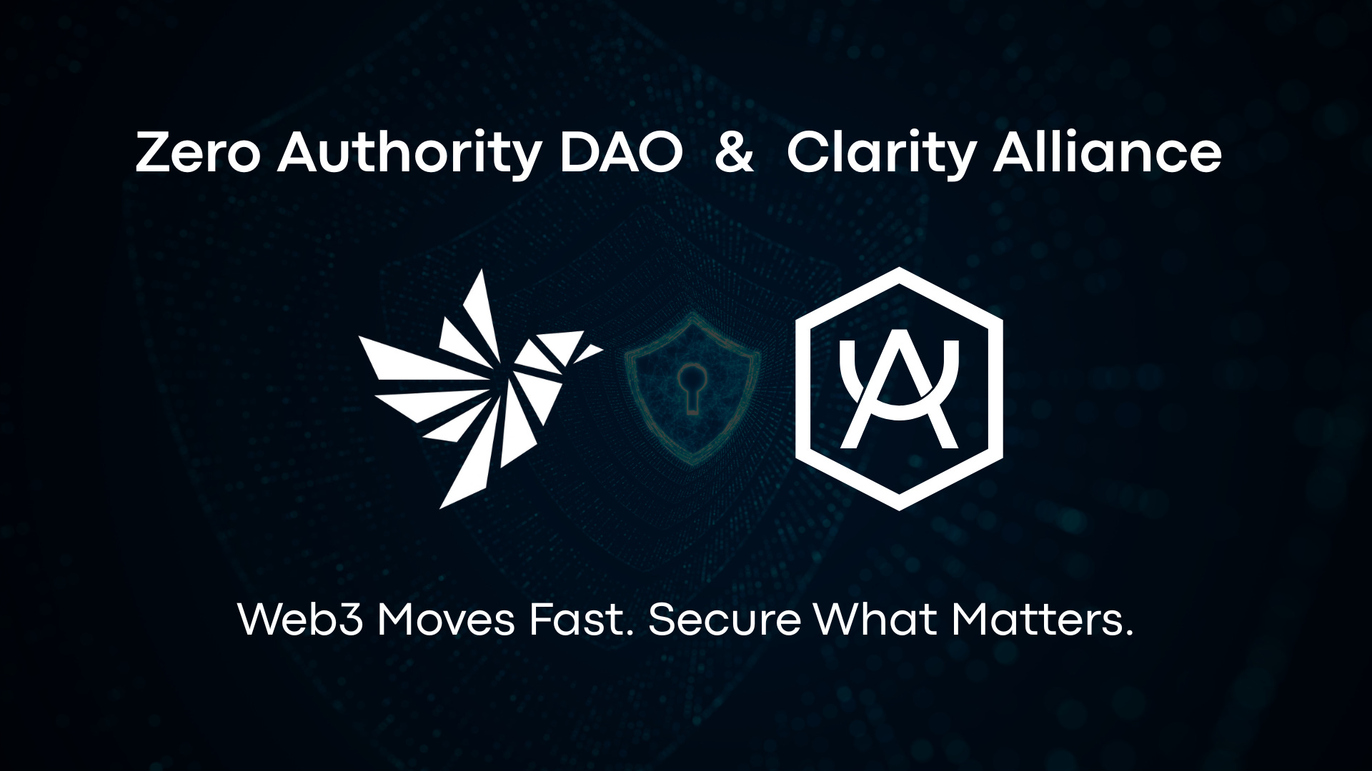 Today, we’re proud to announce a strategic partnership between Zero Authority DAO and Clarity Alliance, uniting to deliver secure, decentralized infrastructure and smart contract auditing to the builders, founders, and creators of tomorrow.