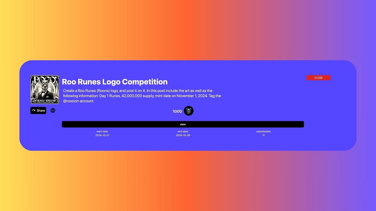 Since 2017, I've shared the vision that the Lego blocks of Web3 would eventually connect. Today, I witnessed this vision come to life! The ROONS logo was created through a bounty on Zero Authority, and I purchased ROONS on a platform developed by Bruff, which makes inscriptions accessible to all. I now proudly own these assets in my XverseApp and LeatherBTC wallets.