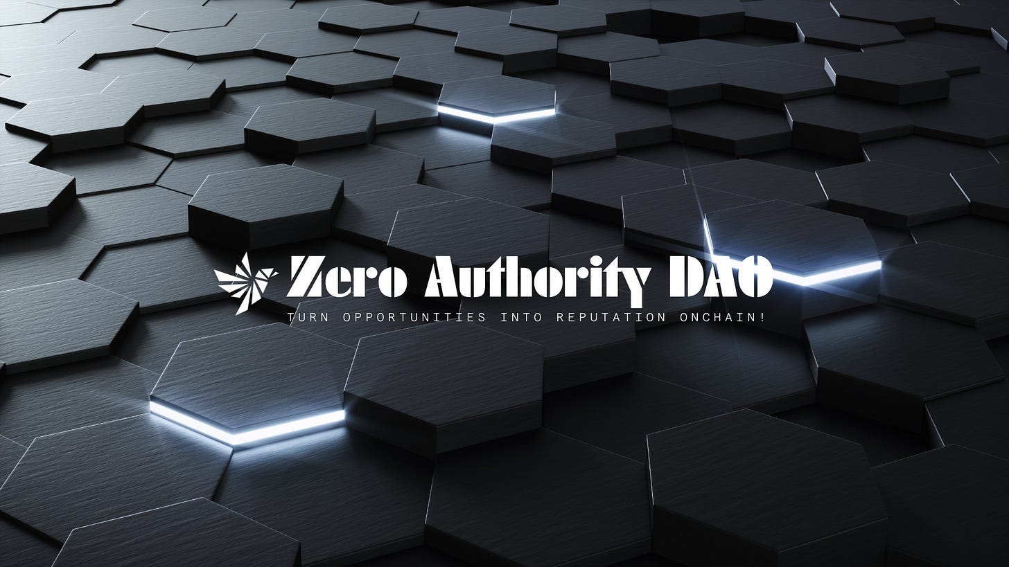 At Zero Authority DAO, we believe reputation is a cornerstone of the decentralized future. By anchoring reputation to onchain activity, we ensure that trust is earned, not assumed. This approach aligns with our mission: to empower individuals and communities to collaborate transparently, build together, and transition toward decentralized models that truly work.